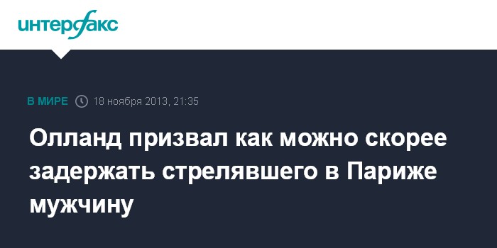Париж. 18 ноября. INTERFAX.RU - Президент Франции Франсуа Олланд призвал силы правопорядка страны как можно скорее найти и задержать вооруженного мужчину, дважды устроившего стрельбу в понедельник в центре Парижа.