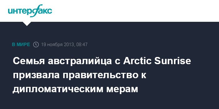 Семья австралийца с Arctic Sunrise призвала правительство к дипломатическим мерам