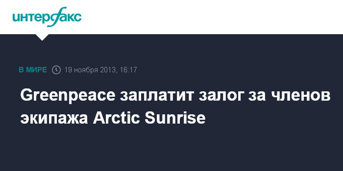Greenpeace заплатит залог за членов экипажа Arctic Sunrise