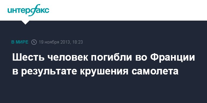 Париж. 19 ноября. INTERFAX.RU - В результате падения небольшого туристического самолета во французском департаменте Йонна погибли шесть пассажиров, сообщает во вторник сайт французской газеты Le Figaro.