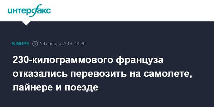 230-килограммового француза отказались перевозить на самолете, лайнере и поезде