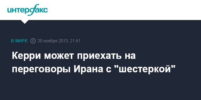 Тегеран. 20 ноября. INTERFAX.RU - Госсекретарь США Джон Керри может прибыть в Женеву на переговоры между Тегераном и "шестеркой" международных посредников, сообщает в среду сайт иранского агентства ИРНА со ссылкой на представителя госдепа Алана Эйра.
