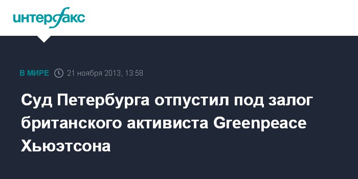 Суд Петербурга отпустил под залог британского активиста Greenpeace Хьюэтсона