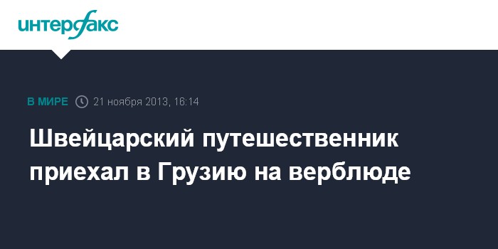 Тбилиси. 21 ноября. INTERFAX.RU - Гражданин Швейцарии Вердон Роланд прибыл в Грузию на верблюде, сообщает пресс-служба Национальной администрации туризма страны в четверг.