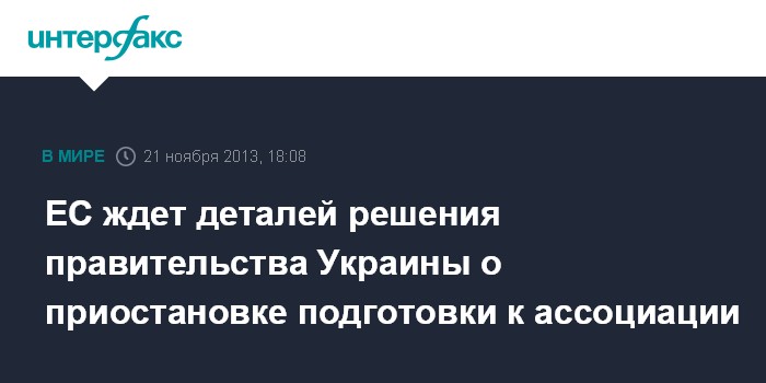 Брюссель. 21 ноября. INTERFAX.RU - В ЕС ждут деталей принятого украинским правительством решения приостановить подготовку к подписанию Соглашения об ассоциации между Украиной и ЕС, но отмечают, что только президент принимает решения о своем будущем, заявляет министр иностранных дел председательствующей в ЕС Литвы Линас Линкявичюс.
