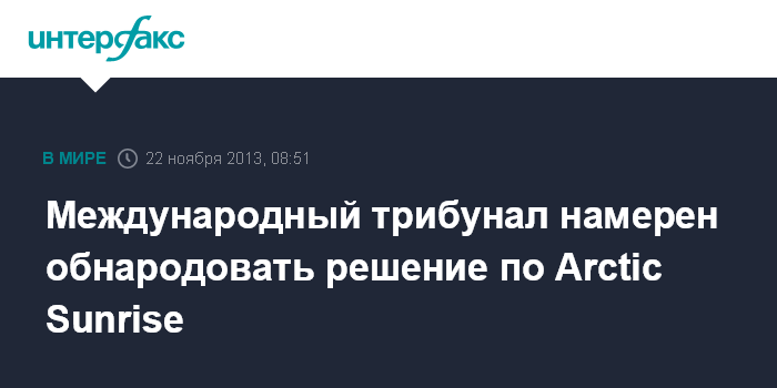 Берлин. 22 ноября. INTERFAX.RU - Международный трибунал ООН по морскому праву в пятницу планирует огласить вердикт по делу о правомерности задержания российскими властями судна Greenpeace Arctic Sunrise.