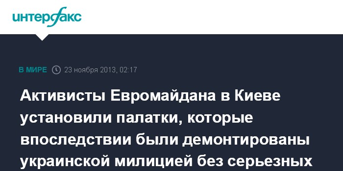 Активисты Евромайдана в Киеве установили палатки, которые впоследствии были демонтированы украинской милицией без серьезных инцидентов