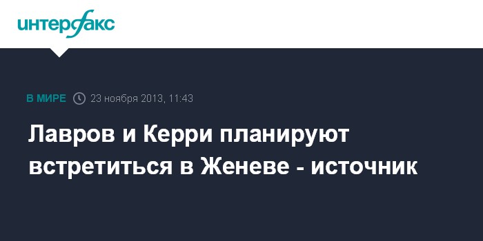 Женева. 3 ноября. INTERFAX.RU - Встреча главы МИД РФ Сергея Лаврова с госсекретарем США Джоном Керри запланирована на субботу в Женеве, также возможна их трехсторонняя встреча со спецпредставителем ООН и ЛАГ по Сирии Лахдаром Брахими, заявил источник в российской делегации. "На сегодня запланирована встреча Лаврова с Керри", - сказал он журналистам.