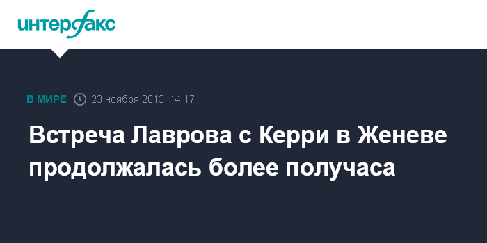 Женева. 23 ноября. INTERFAX.RU - Глава МИД РФ Сергей Лавров и госсекретарь США Джон Керри провели встречу в Женеве. Беседа длилась чуть более 30 минут и была посвящена иранской ядерной программе. По завершении переговоров Дж.Керри долго жал С.Лаврову руку и поблагодарил его.