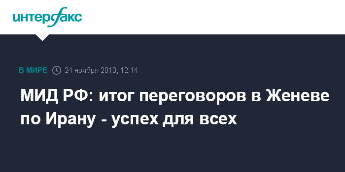 МИД РФ: итог переговоров в Женеве по Ирану - успех для всех