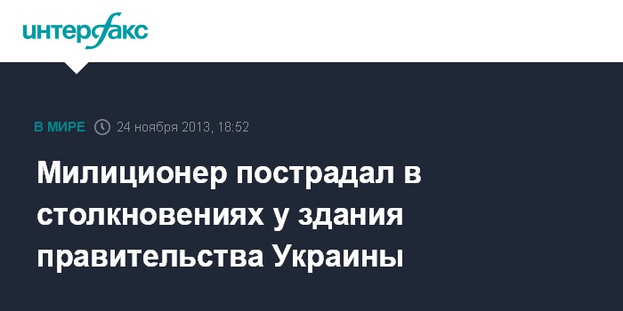 Киев. 24 ноября. INTERFAX.RU - Участники акции под флагами "Свободы" причинили телесные повреждения сотруднику милиции под зданием Кабинета министров Украины.
