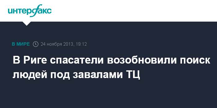 Рига. 24 ноября. INTERFAX.RU - Сотрудники Государственной пожарно-спасательной службы (ГПСС) Латвии вечером в воскресенье возобновили поиски людей в разрушенном рижском магазине Maxima.