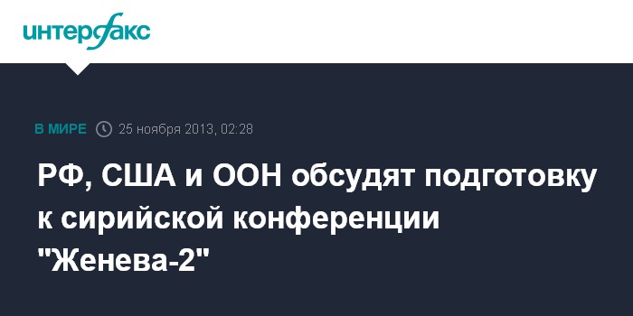 Женева. 25 ноября. ИНТЕРФАКС - Очередная трехсторонняя встреча Россия-США-ООН по подготовке международной конференции по Сирии "Женева-2" состоится в понедельник.