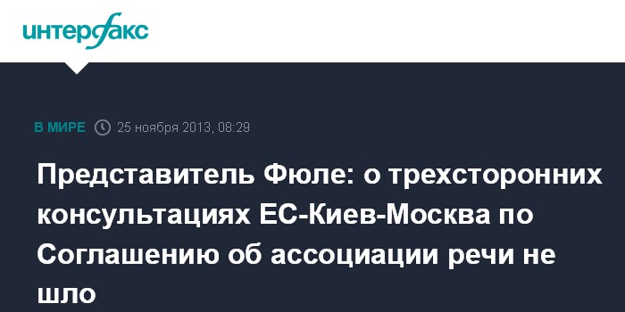 Представитель Фюле: о трехсторонних консультациях ЕС-Киев-Москва по Соглашению об ассоциации речи не шло