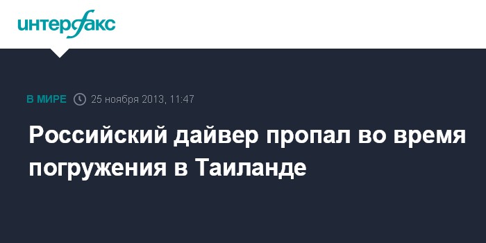 Москва. 25 ноября. INTERFAX.RU - Российский турист пропал во время погружения у берегов острова Ко-Рин в Таиланде, сообщает Pattaya Daily News.