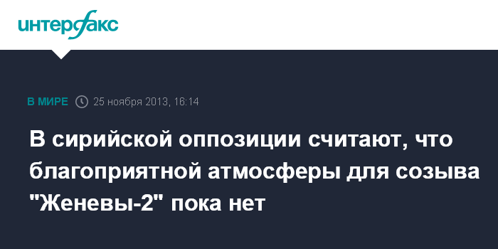 Женева. 25 ноября. INTERFAX.RU - Сирийская оппозиция считает, что режим президента Башара Асада не готов к проведению мирной конференции "Женева-2".