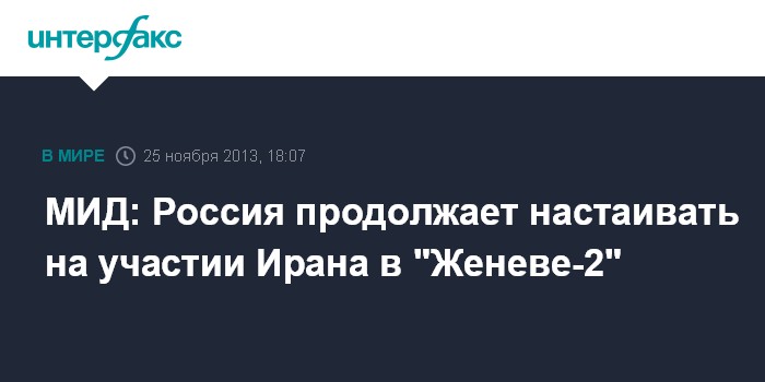 МИД: Россия продолжает настаивать на участии Ирана в "Женеве-2"