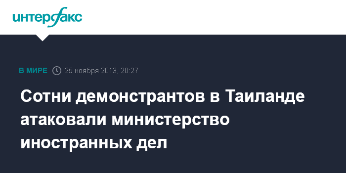 Вашингтон. 25 ноября. INTERFAX.RU - Более 1 тыс. участников антиправительственных акций протеста в Бангкоке прорвались в понедельник на территорию министерства иностранных дел, сообщают западные СМИ.