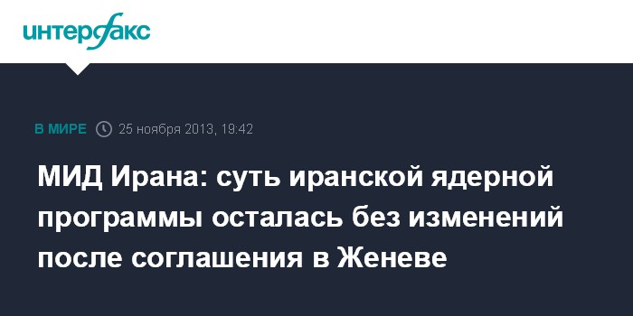 МИД Ирана: суть иранской ядерной программы осталась без изменений после соглашения в Женеве