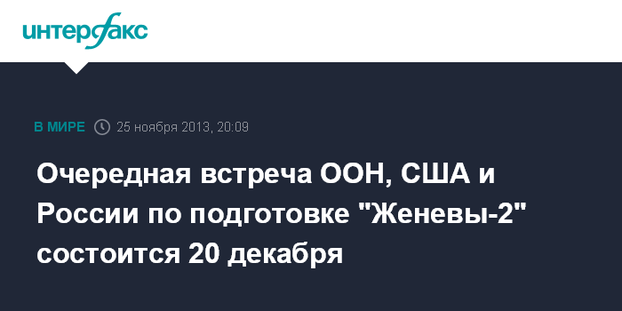 Очередная встреча ООН, США и России по подготовке "Женевы-2" состоится 20 декабря