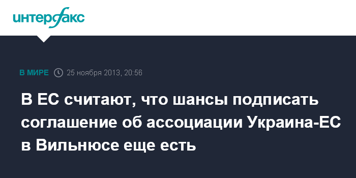 Киев. 25 ноября. INTERFAX.RU - Европейский комиссар по вопросам расширения и Европейской политике соседства Штефан Фюле считает, что возможность подписать Соглашение об ассоциации Украина-ЕС на саммите Восточного партнерства в Вильнюсе сохраняется.