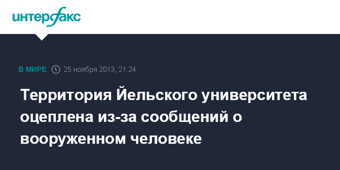 Вашингтон. 25 ноября. INTERFAX.RU - Сотрудники правоохранительных органов США выясняют достоверность сообщений вооруженном человеке, замеченном на территории одного из кампусов Йельского университета (штат Коннектикут - ИФ), сообщает в понедельник агентство AP.