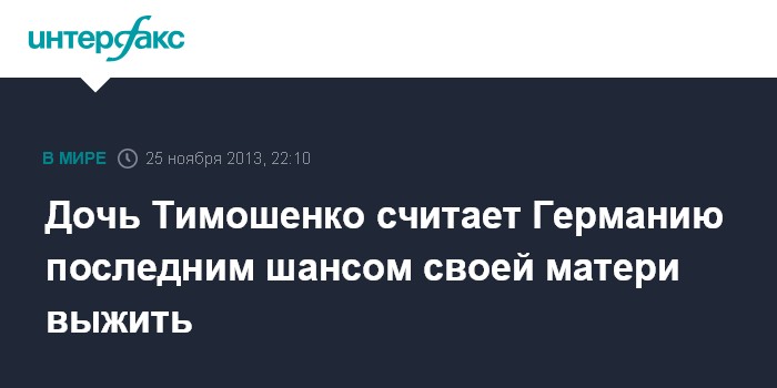 Дочь Тимошенко считает Германию последним шансом своей матери выжить
