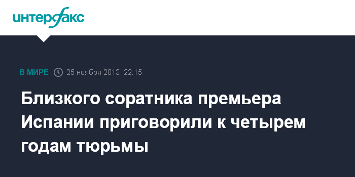Осужденному, которого считают близким соратником премьера Испании Мариано Рахоя, также придется также выплатить государству штраф в размере 693 тыс.евро и такую же сумму возместить налоговым службам.