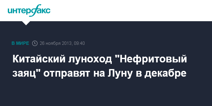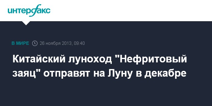 Пекин. 26 ноября. INTERFAX.RU - Китай намерен в декабре доставить на Луну собственный луноход, сообщили во вторник китайские СМИ со ссылкой на Комитет оборонной науки, техники и промышленности страны.