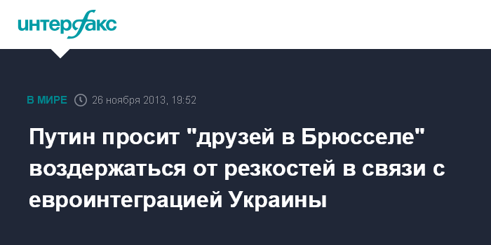 Путин просит "друзей в Брюсселе" воздержаться от резкостей в связи с евроинтеграцией Украины