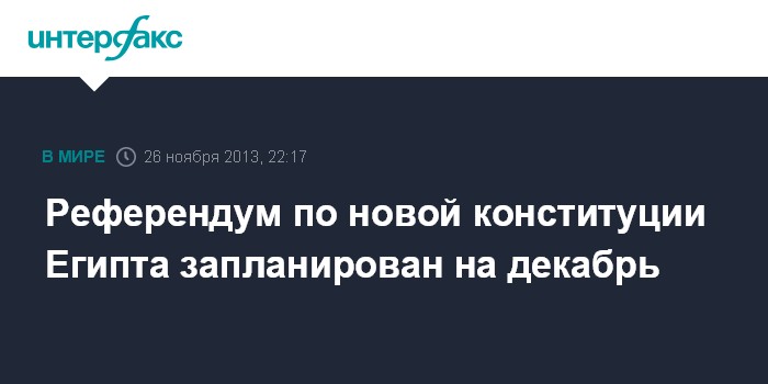 Дубай. 26 ноября. INTERFAX.RU - Референдум по внесению изменений в конституцию Египта, по последним данным, состоится в конце декабря, пишет во вторник египетская газета "Аль-Ахрам" со ссылкой на представителя Конституционной ассамблеи Мухаммеда Сальмави.
