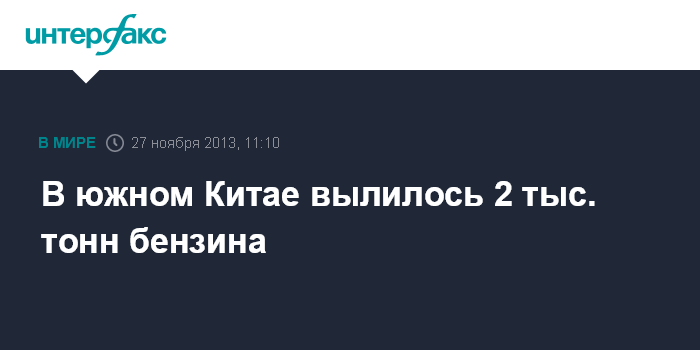 В южном Китае вылилось 2 тыс. тонн бензина