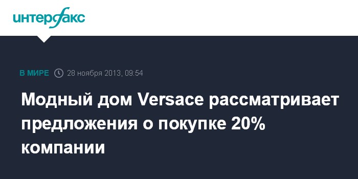Модный дом Versace рассматривает предложения о покупке 20% компании
