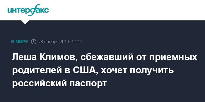Москва. 28 ноября. INTERFAX.RU - Российский сирота Алексей Климов, найденный в США, в ближайшее время получит российский паспорт, заявил уполномоченный при президенте РФ по правам ребенка Павел Астахов.