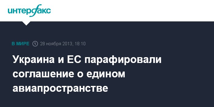 Вильнюс. 28 ноября. INTERFAX.RU - Соглашение между Украиной и Евросоюзом о едином авиационном пространстве парафировано в Вильнюсе в четверг, сообщает сайт литовского председательства в ЕС.