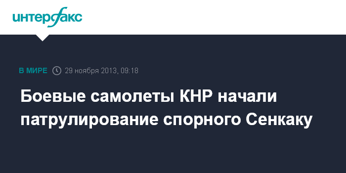 Лондон. 29 ноября. INTERFAX.RU - Китайские власти направили боевые самолеты в район Восточно-Китайского моря, который ранее в Пекине объявили своей зоной опознавания воздушных судов, сообщила в четверг британская телерадиокорпорация BBC.