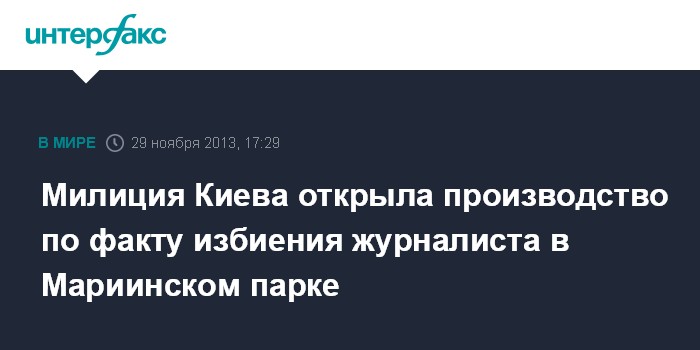 Киев. 29 ноября. INTERFAX.RU - Милиция Киева открыла уголовное производство в связи с избиением журналиста "Громадскього ТВ" Дмитрия Гнапы в Мариинском парке.