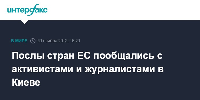 Киев. 30 ноября. INTERFAX.RU - Послы ряда стран - членов ЕС и глава представительства Евросоюза на Украине Ян Томбинский прибыли на Михайловскую площадь к активистам "евромайдана".