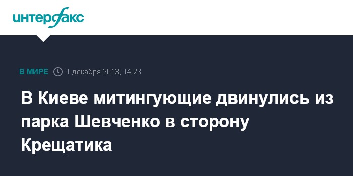 Киев. 1 декабря. INTERFAX.RU - Митингующие начинают двигаться от парка им.Т.Шевченко, где стартовало народное вече, в сторону Бессарабской площади.