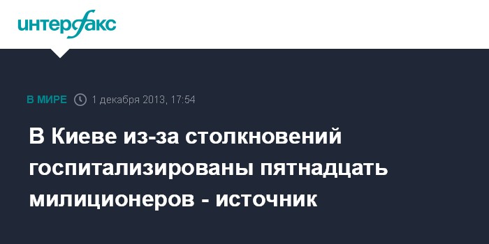 Киев. 1 декабря. INTERFAX.RU - Полтора десятка сотрудников силовых ведомств госпитализированы в результате столкновений с митингующими у здания Администрации президента Украины на ул.Банковой в Киеве, сообщил агентству "Интерфакс-Украина" источник в правоохранительных органах. "Пятнадцать милиционеров госпитализированы с различными травмами в результате столкновений с митингующими возле администрации президента", - рассказал источник.