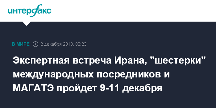 Экспертная встреча Ирана, "шестерки" международных посредников и МАГАТЭ пройдет 9-11 декабря
