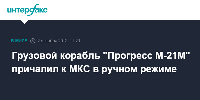 Грузовой корабль "Прогресс М-21М" причалил к МКС в ручном режиме