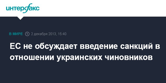 Брюссель. 2 декабря. INTERFAX.RU - ЕС не обсуждает введение персональных санкций в отношении украинских должностных лиц.