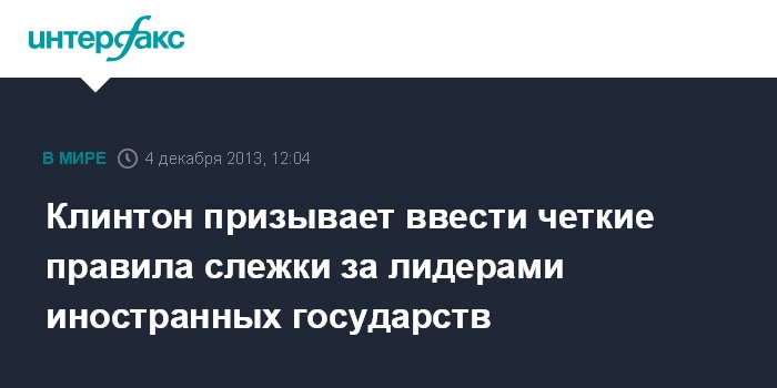 "Думаю, должны быть установлены очень четкие правила прослушивания разговоров мировых лидеров", - сказал Клинтон в ходе телепередачи на одном их американских телеканалов.