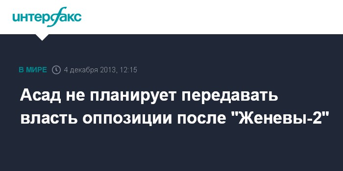 Асад не планирует передавать власть оппозиции после "Женевы-2"