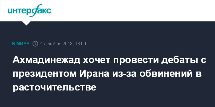 Тегеран. 4 декабря. INTERFAX.RU - Экс-президент Ирана Махмуд Ахмадинежад вызвал на публичные дебаты своего преемника Хасана Рухани, возложившего на него ответственность за провалы в экономике страны.