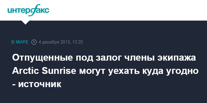 Отпущенные под залог члены экипажа Arctic Sunrise могут уехать куда угодно - источник