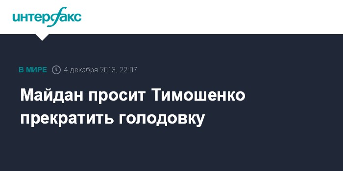 Киев. 4 декабря. INTERFAX.RU - Люди, объявившие бессрочную акцию протеста на площади Независимости, просят экс-премьера Юлию Тимошенко прекратить голодовку.