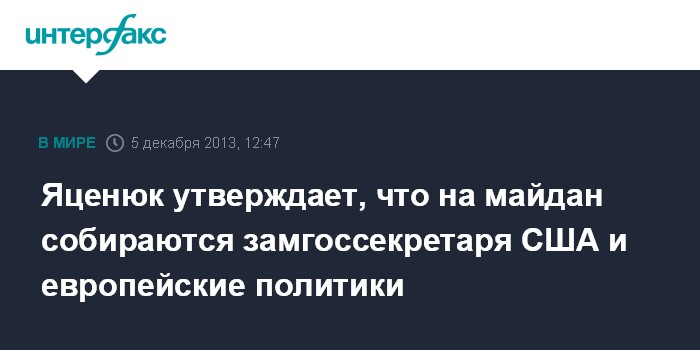 Киев. 5 декабря. INTERFAX.RU - Лидер фракции "Батькивщина" Арсений Яценюк заявляет, что в четверг на площадь Независимости собираются прийти заместитель государственного секретаря США Виктория Нуланд и ряд европейских политиков.