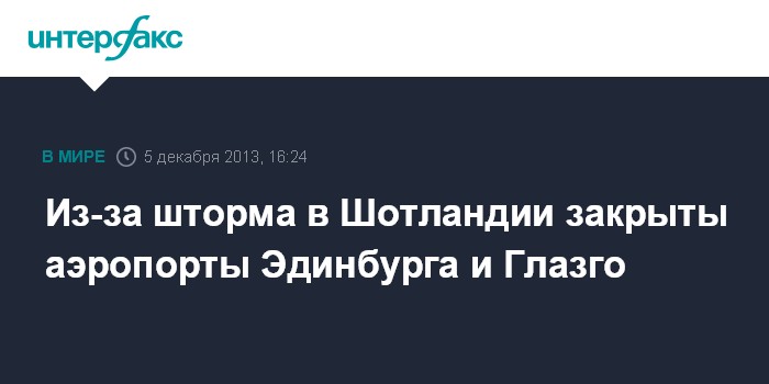Лондон. 5 декабря. INTERFAX.RU - Из-за сильнейшего урагана и непрекращающихся ливней в Шотландии прекращено железнодорожное сообщение, закрыты аэропорты в Эдинбурге и Глазго, сообщили британские СМИ.